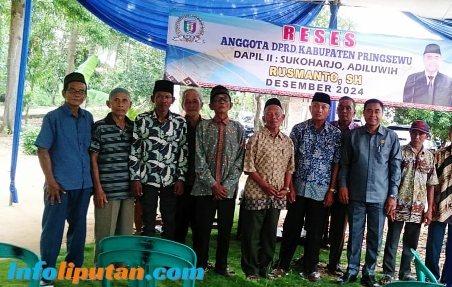 Rusmanto ,S.H, Anggota DPRD Kabupaten Pringsewu (Komisi 3) menaungi dapil 2 Sukoharjo dan Adiluwih menggelar Reses akhir tahun 2024 untuk menyerap aspirasi masyarakat di dapilnya yang berlangsung di Pekon Pandansari Selatan Kecamatan Sukoharjo, pada sabtu (14/12/2024).