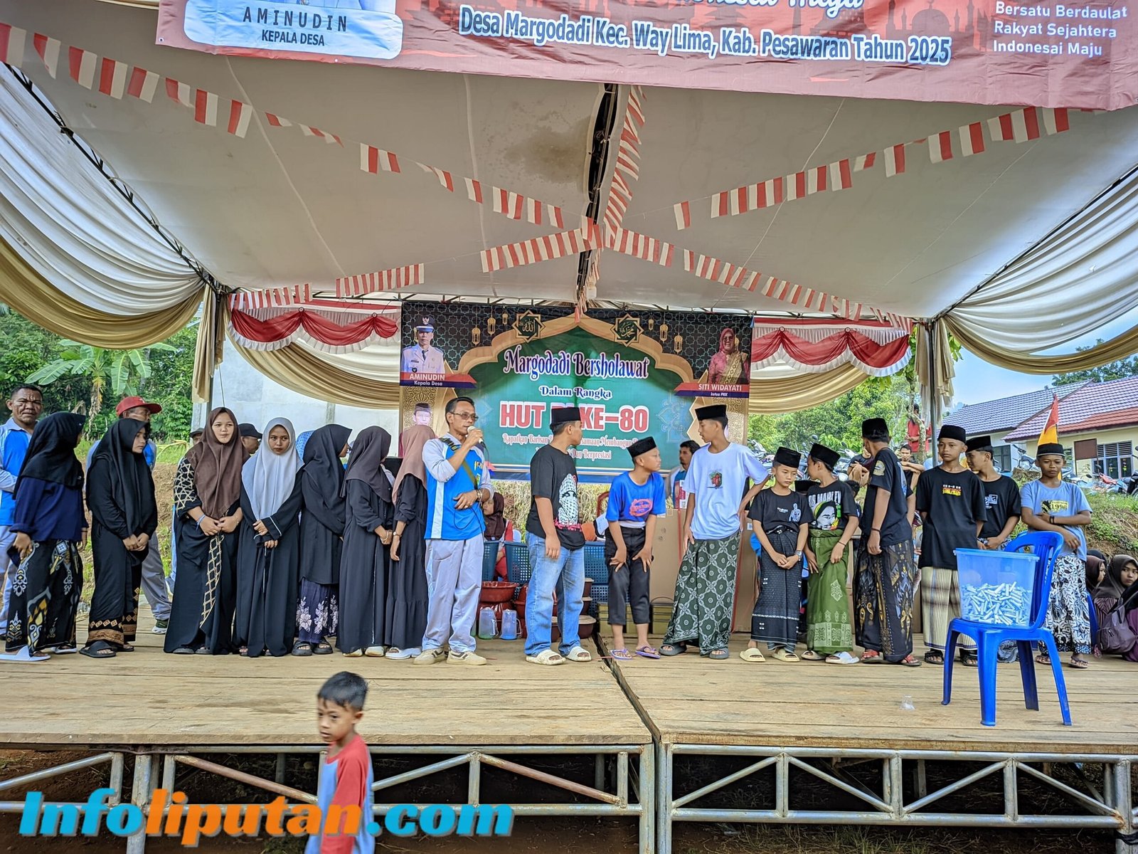 Infoliputan.com/Pesawaran-Semarak perayaan Hari Ulang Tahun ke-80 Republik Indonesia terasa hingga ke pelosok desa. Sabtu (16/8/2025), masyarakat Desa Margodadi, Kecamatan Way Lima, Kabupaten Pesawaran, tumpah ruah mengikuti berbagai kegiatan perayaan kemerdekaan yang dipusatkan di lapangan desa.