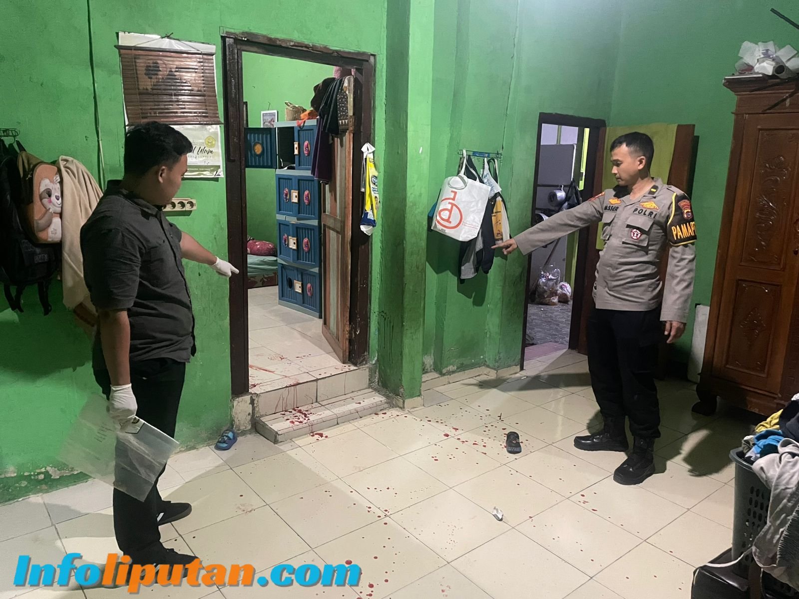Mengetahui hal tersebut, pelapor segera menyusul masuk ke dalam rumah. Di dalamnya, pelapor mendapati terduga pelaku sedang menodongkan sebilah golok ke arah istrinya yang berinisial PA. Ketika pelapor meminta terduga untuk keluar dari rumah, permintaan tersebut tidak diindintaan tersebut tidak diindahkan dan malah membuat terduga mengejar pelapor sambil membawa golok. Pelapor kemudian berlari keluar rumah untuk menyelamatkan diri. Setelah itu, terduga kembali masuk rumah dan mengayunkan golok ke arah istrinya (yang juga merupakan adik pelapor), menyebabkan korban Sdri. PA mengalami luka pada tangan kiri, bahu kiri, kaki kiri, serta jari jempol tangan kanan putus.