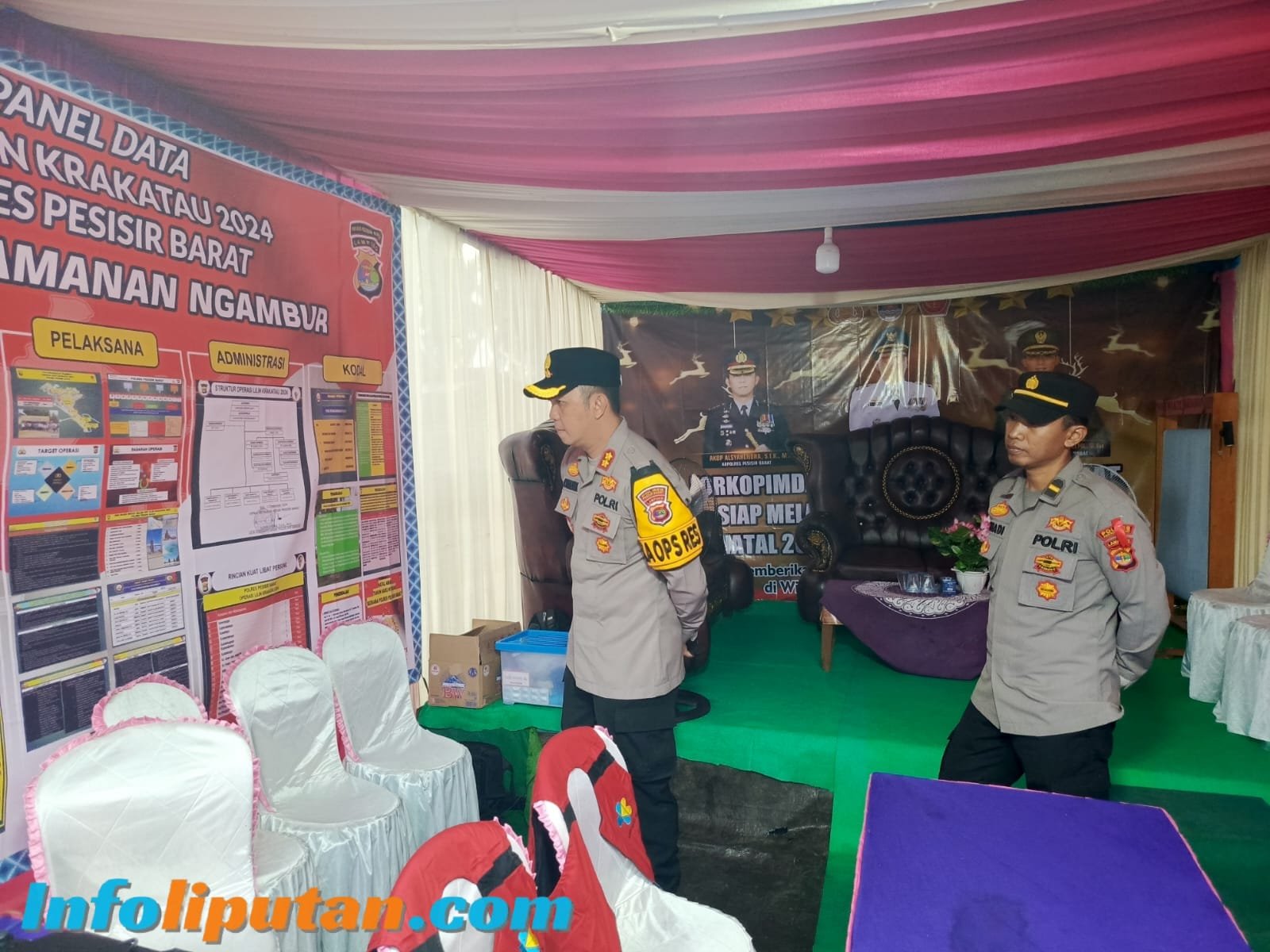 24 Desember 2024 – Kapolres Pesisir Barat, AKBP Alsyahendra, S.I.K., M.H., melakukan kunjungan dan supervisi ke Pos Pengamanan (Pospam) Ngambur yang berlokasi di Pekon Sumberagung, Kecamatan Ngambur, Kabupaten Pesisir Barat, pada Selasa (24/12) pukul 17.30 WIB. Kunjungan ini merupakan bagian dari pelaksanaan Operasi Lilin Krakatau 2024, yang bertujuan untuk memastikan keamanan dan kenyamanan masyarakat selama perayaan Natal dan Tahun Baru.