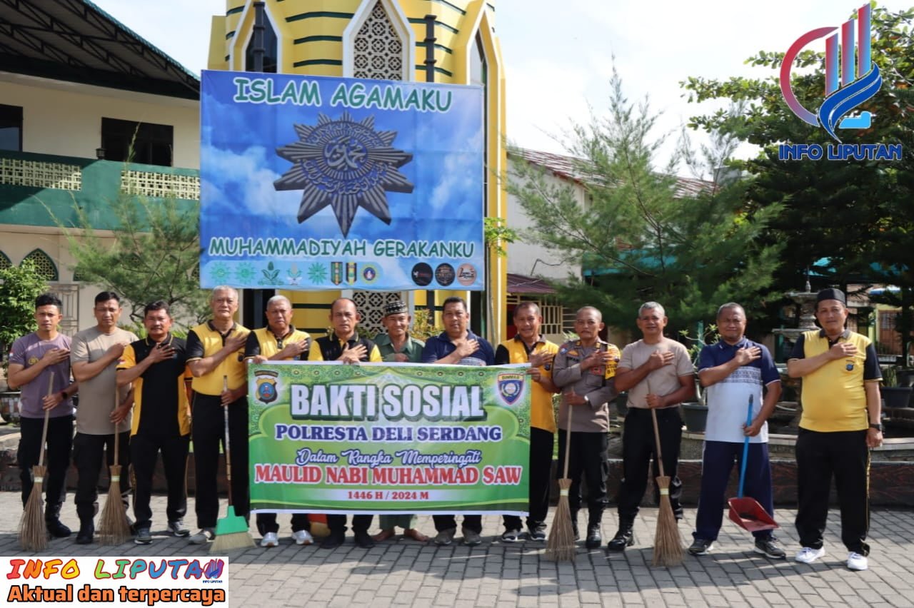 Deli Serdang/infoliputan.com ||Dalam rangka memperingati Maulid Nabi Muhammad SAW Tahun 1446 H, 2024 M, Polresta Deli Serdang laksanakan kegiatan Bhakti Sosial Tempat Ibadah di Masjid Taqwa Muhammadiyah, Jln Diponegoro Kec. Lubuk Pakam Kab. Deli Serdang, ( 14/9/2024)