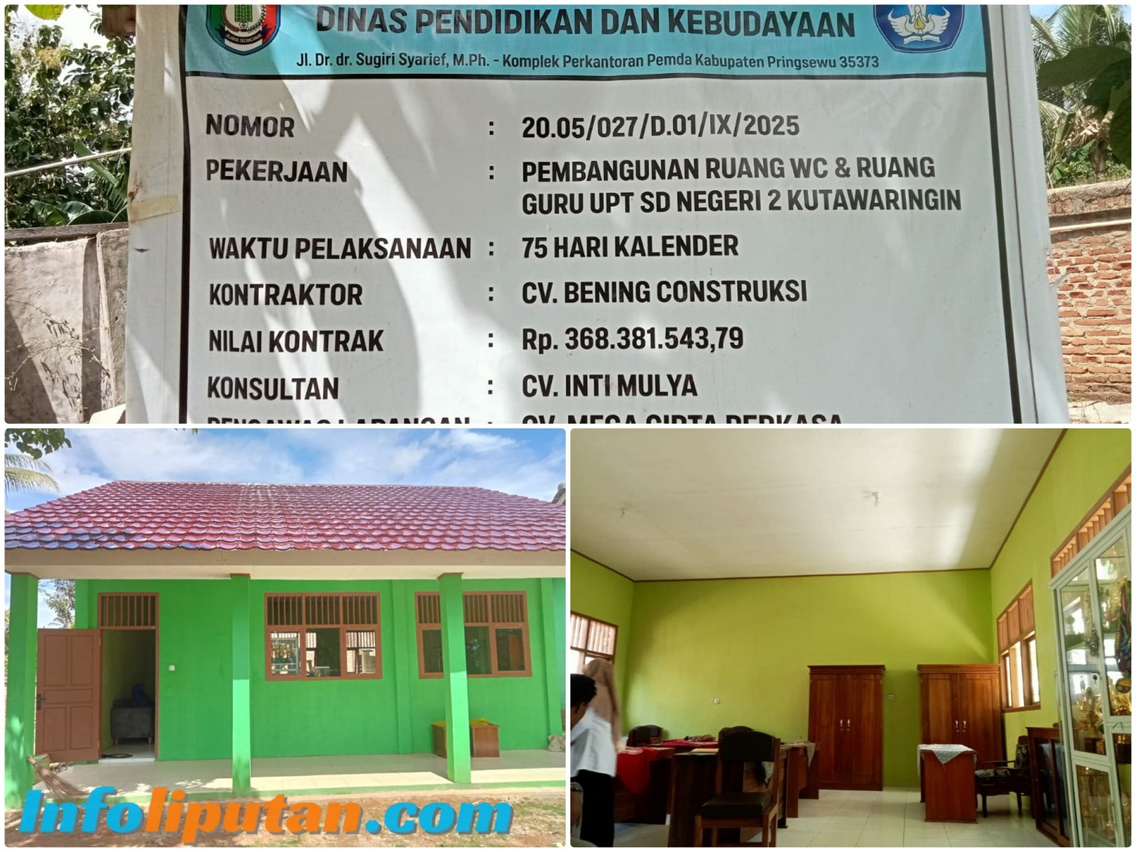 Info Liputan Pringsewu – Pembangunan ruang guru Sekolah Dasar Negeri (SDN) 2 Kuta Waringin di Kecamatan Adiluwih, Kabupaten Pringsewu, Lampung, menjadi perbincangan hangat di kalangan masyarakat. Alasan utamanya, proyek ini diduga kuat mengalami mark-up anggaran yang membuat hasil pekerjaan tidak sesuai dengan dana yang dikeluarkan. Rabu (17/12/2025)