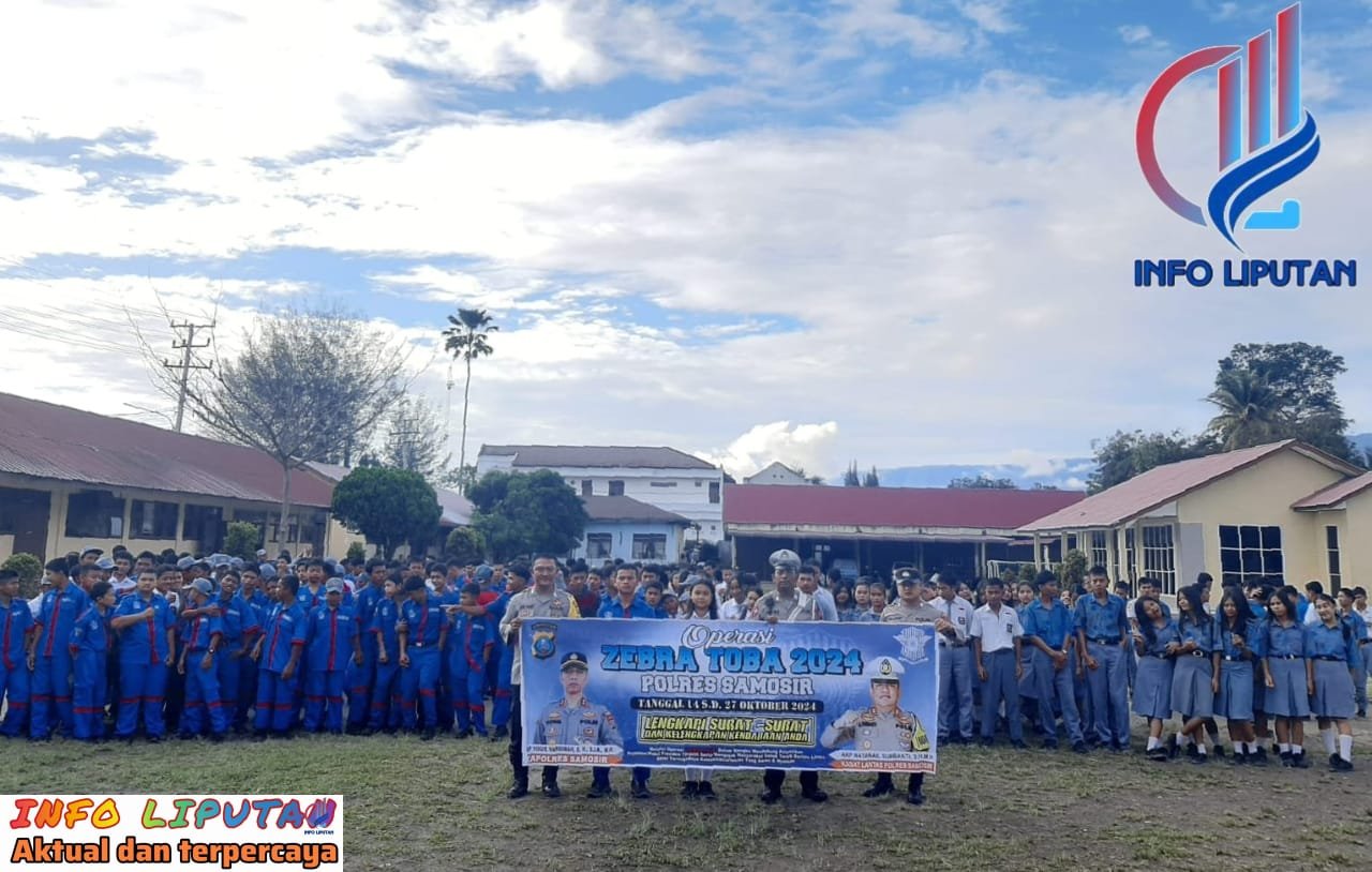 Samosir/infoliputan.com ||Dalam rangka pelaksanaan Operasi Zebra Toba 2024, Polres Samosir mengadakan penyuluhan kepada para pelajar SMA/SMK HKBP Pangururan. Kegiatan ini dilaksanakan pada Rabu, 16 Oktober 2024, di lapangan sekolah mulai pukul 07.30 WIB. Penyuluhan tersebut dipimpin oleh Kasubsatgas Binluh dan Kasubsatgas Dikmas Operasi Zebra Toba 2024 Polres Samosir, Bripka Jefri Siregar dan Bripka Efri Pandi, dengan didampingi oleh guru-guru sekolah. (16/10/2024)