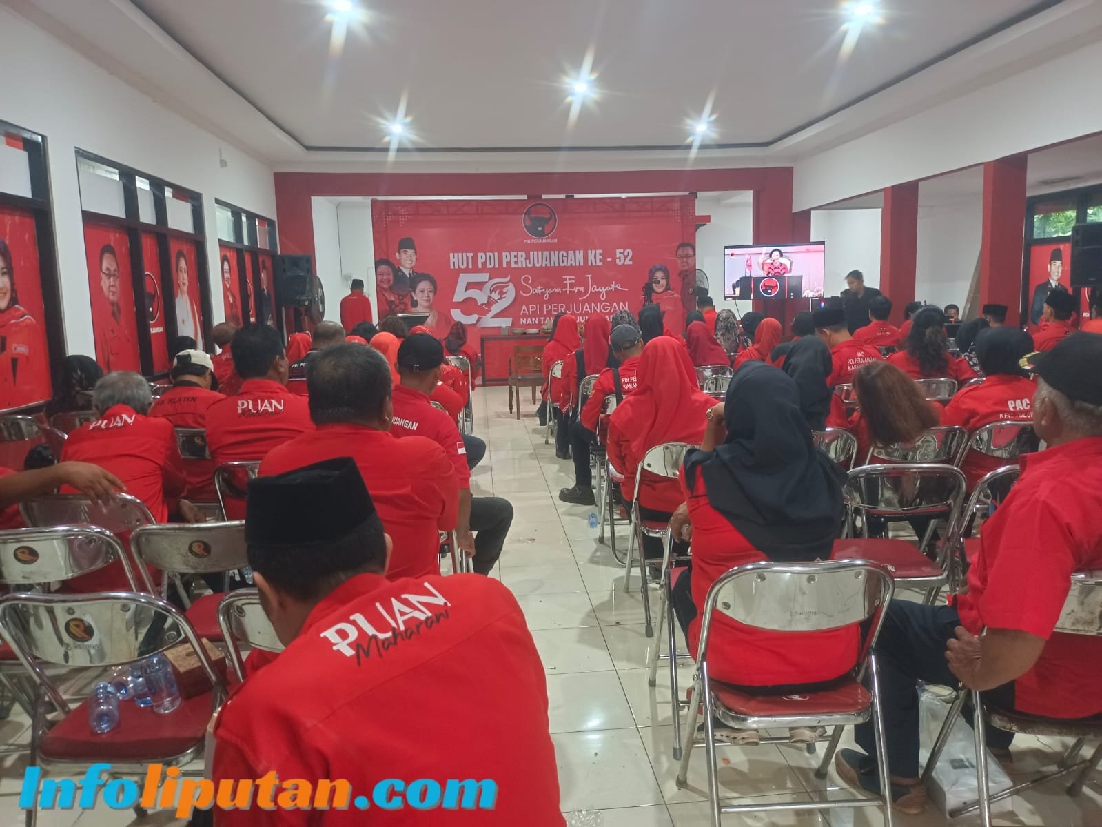 Kegiatan Harlah sederhana ini digelar bersamaan dengan tayangan streaming langsung kegiatan gelaran HUT PDIP di Jakarta Selatan, dalam tayangan streaming tersebut terlihat Hasto Kristiyanto Sekretaris Jenderal (Sekjen) PDIP, hadir mendampingi Ketua Umumnya, Megawati Soekarnoputri saat tiba di ruang peringatan hari ulang tahun (HUT) PDIP ke 52, di Sekolah Partai, Lenteng Agung, Jakarta Selatan, Hasto dan Megawati nampak tiba di lokasi HUT sekitar pukul 13.00 WIB, turut hadir pula bersama mereka putra Megawati, Prananda Prabowo dan sejumlah elite DPP PDIP lain, Ganjar Pranowo, Bendahara Umum Olly Dondokambey, Ketua DPP Said Abdullah, Eriko Sotarduga, Komarudin Watubun, hingga politikus Panda Nababan, serta banyak lagi para pengurus partai PDI Perjuangan.