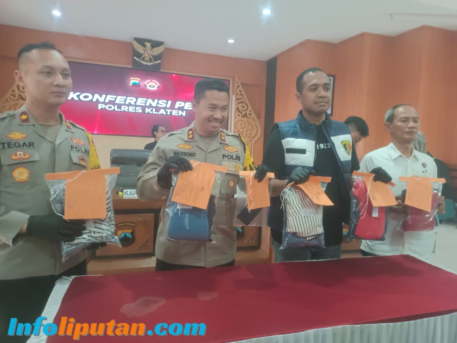 Lebih lanjut Kapolres Klaten Kapolres AKBP Warsono, S.H., S.I.K., M.H. mengatakan ‘’ Setelah menerima laporan dan melakukan pendalaman terhadap rekaman video milik pelapor, pada Senin 16 Desember 2024 sekira pukul 22.00 WIB, para tersangka diamankan di Kos Edelweis, dukuh Jetak, Karanganom, sementara untuk pelaku yakni inisial ( APE 29 Tahun ) warga Mirenglor Desa Mireng Kecamatan Trucuk, Klaten, serta inisial ( AM 26 Tahun ) dan ( LS 24 Tahun ), keduanya warga Dukuh Bunder, Desa Pakahan, Kecamatan Jogonalan, Klaten, serta ( DJ 34 Tahun ) warga Jalan Mayor Kusmanto, Desa Semangkak, Kecamatan Klaten Tengah, Klaten, dan ( AR 28 Tahun ) warga Dukuh Menggah, Desa Katekan, Kecamatan Gantiwarno, Klaten, ” Pungkas Kapolres Klaten.