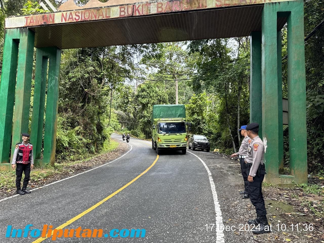 Polsek Bengkunat bersama Personel BKO Sat Samapta Pos Slendang Mayang Polres Pesisir Barat melaksanakan patroli pengamanan dalam rangka Kegiatan Rutin Yang Ditingkatkan (KRYD) di Jalan Pekon Penyandingan, kawasan Taman Nasional Bukit Barisan Selatan (TNBBS), Kecamatan Bengkunat, Kabupaten Pesisir Barat, Senin (17/12/2024). Kegiatan ini bertujuan untuk menjaga situasi keamanan dan ketertiban masyarakat (Kamtibmas) serta mencegah potensi gangguan keamanan di wilayah tersebut.