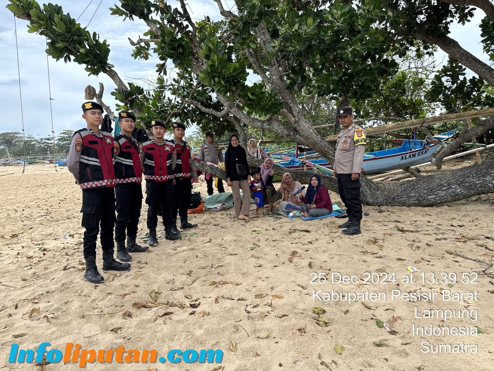 Dalam rangka menyambut liburan Natal dan Tahun Baru, Polsek Bengkunat melakukan kegiatan pengamanan dan himbauan kepada masyarakat yang berkunjung ke wisata Pantai Kota Jawa, Kecamatan Bengkunat, Kabupaten Pesisir Barat, pada Rabu, 25 Desember 2024.