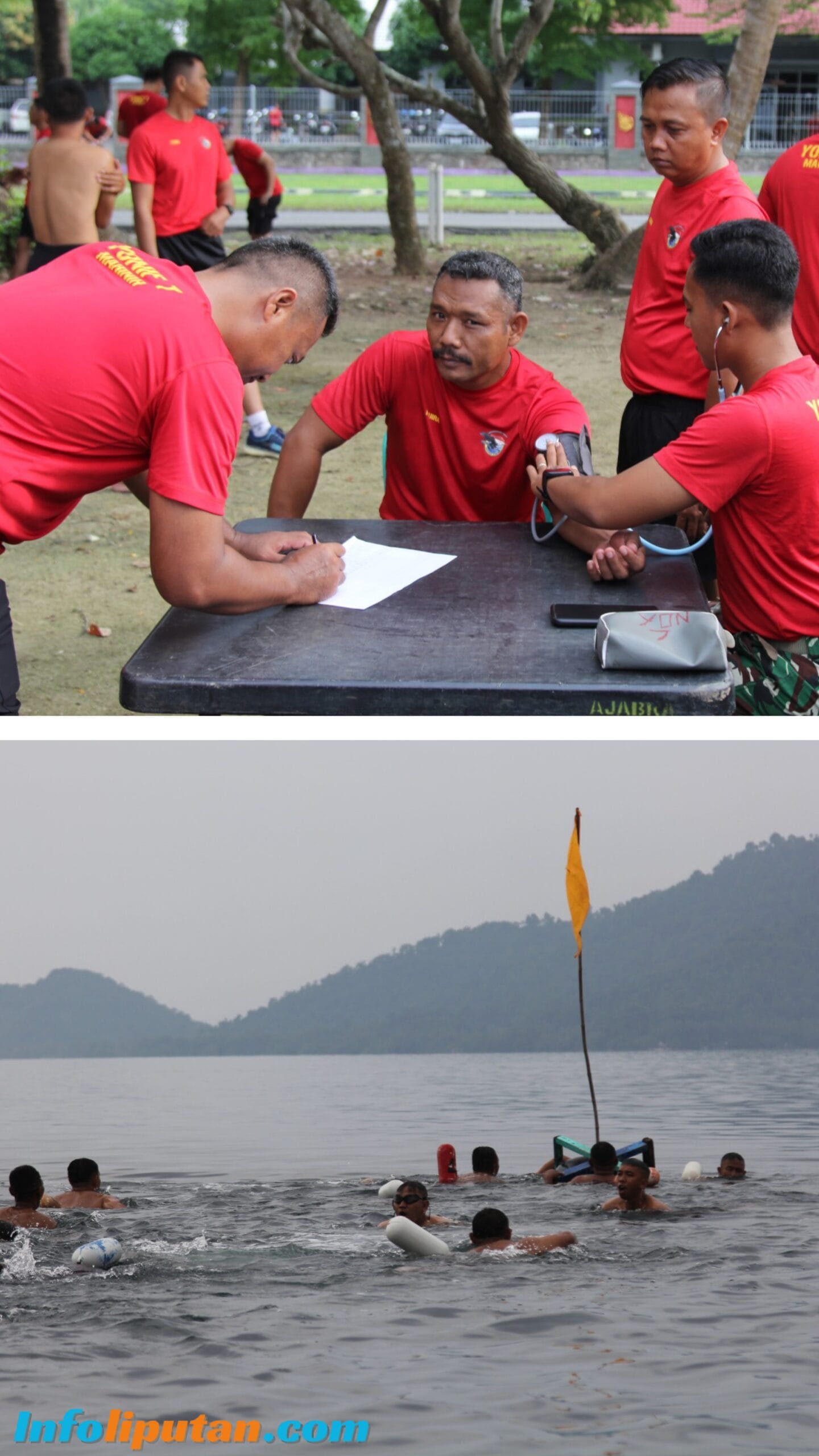 Pesawaran,//infoliputan.com–TNI AL, KORMAR, Brigif 4 Marinir/BS. Prajurit Batalyon Infanteri 7 Marinir laksanakan renang laut untuk meningkatkan kebugaran jasmani, ketahanan dan ketangkasan prajurit di kolam renang laut Mako Yonif 7 Marinir, Ketapang, Teluk Pandan, Pesawaran. Kamis (22/01/2026)
