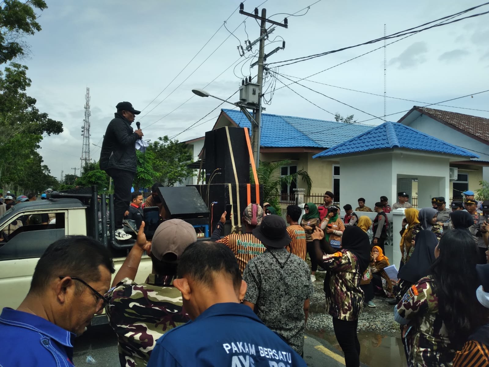 Kehadiran para pengunjuk rasa diterima oleh para Komisioner Komisi Pemilihan Umum (KPU) Kabupaten Deli Serdang diantaranya, Ziaulhaq Siregar, Erdiana Sinuhaji, Uswatun Hasanah Harahap dan Sekretaris Nazrul Ichsan Nasution di depan Kantor KPU di Lubuk Pakam .