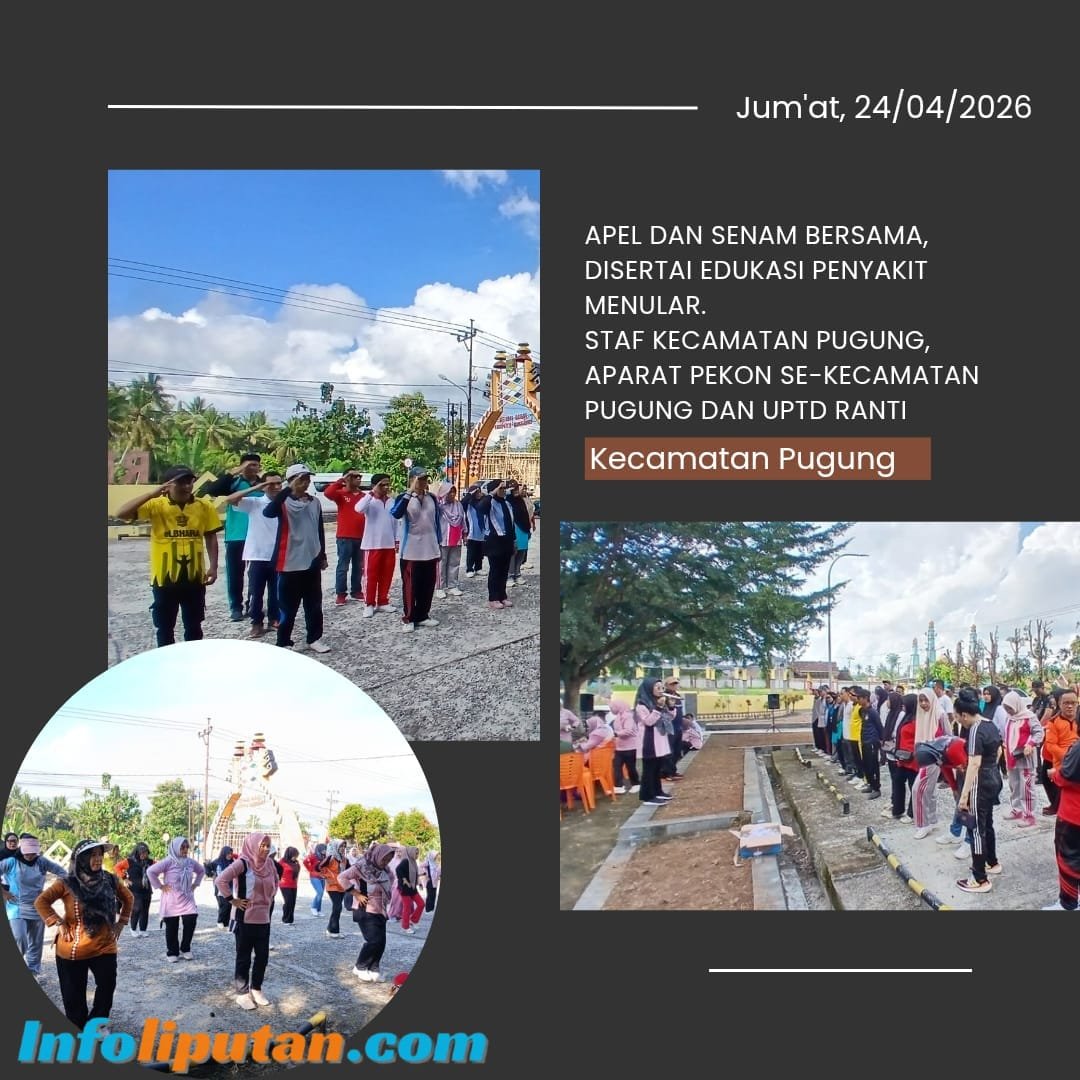 Tanggamus, infoliputan.com – Pugung – Kegiatan apel, senam sehat, dan edukasi penyakit menular kembali digelar di Rest Area Kecamatan Pugung,Kabupaten Tanggamus,Jumat (24/4/2026) pagi. Acara ini menjadi ajang kebersamaan masyarakat sekaligus upaya meningkatkan kesadaran akan pentingnya menjaga kesehatan.