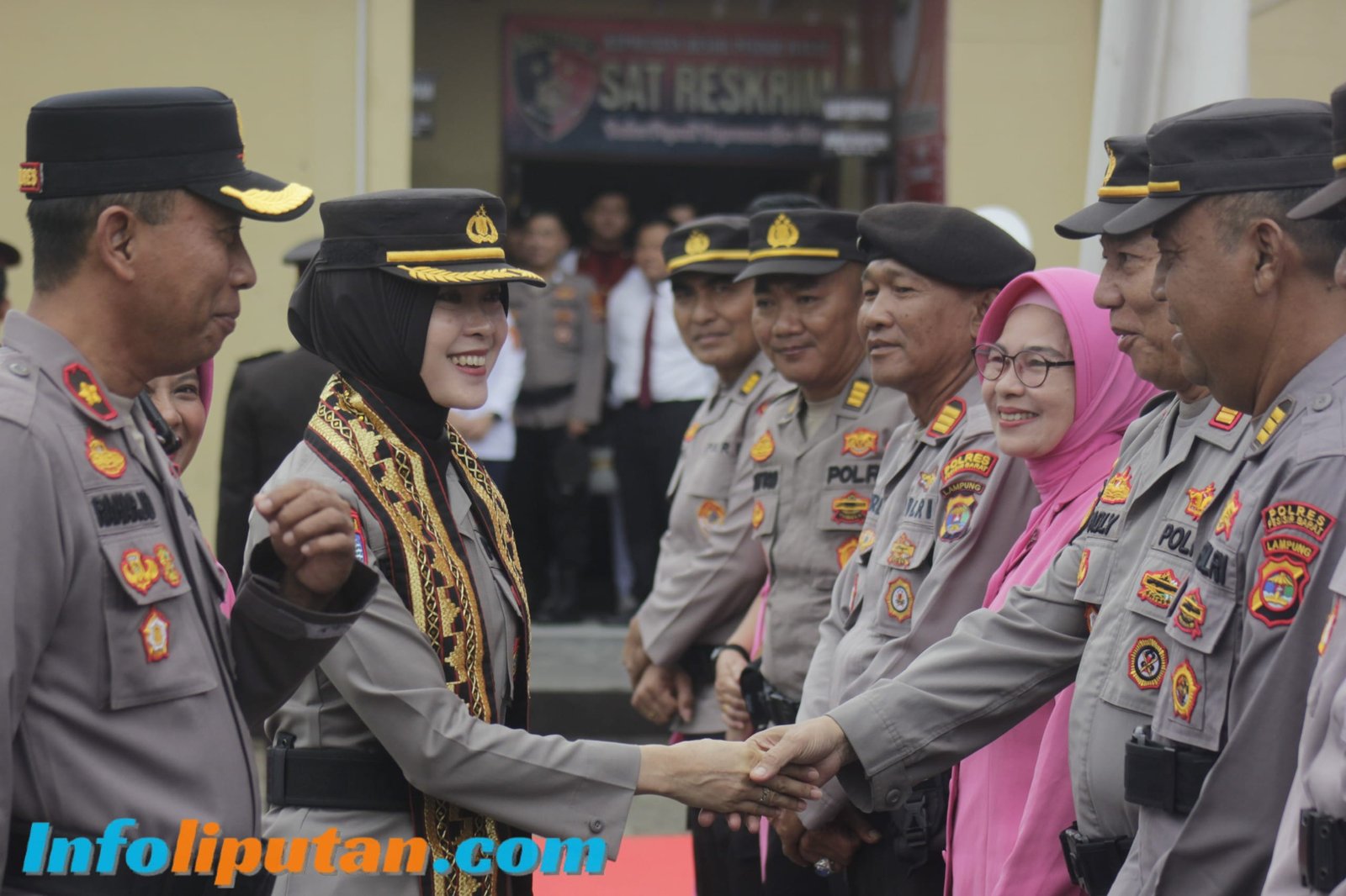 Pesisir Barat, Infoliputan.com – Suasana haru dan penuh semangat kebersamaan mewarnai Serah Terima Jabatan (Sertijab) Kapolres Pesisir Barat, Senin (21/4/2025). Upacara khidmat di halaman Mapolres tersebut menandai berakhirnya masa jabatan AKBP Alsyahendra, S.IK., M.H., dan dimulainya kepemimpinan AKBP Bestiana, S.IK., M.M. Lebih lanjut, proses pergantian kepemimpinan ini berlangsung lancar dan penuh dengan nuansa adat istiadat setempat. Panitia penyambutan mengalungkan kain tapis dan memberikan buket bunga kepada AKBP Bestiana sebagai tanda penghormatan. Para penari membawakan tarian tradisional Sigeh Pengunten, sementara Pasukan Jarmat Sat Samapta dan barisan Pedang Pora menambah khidmat upacara.