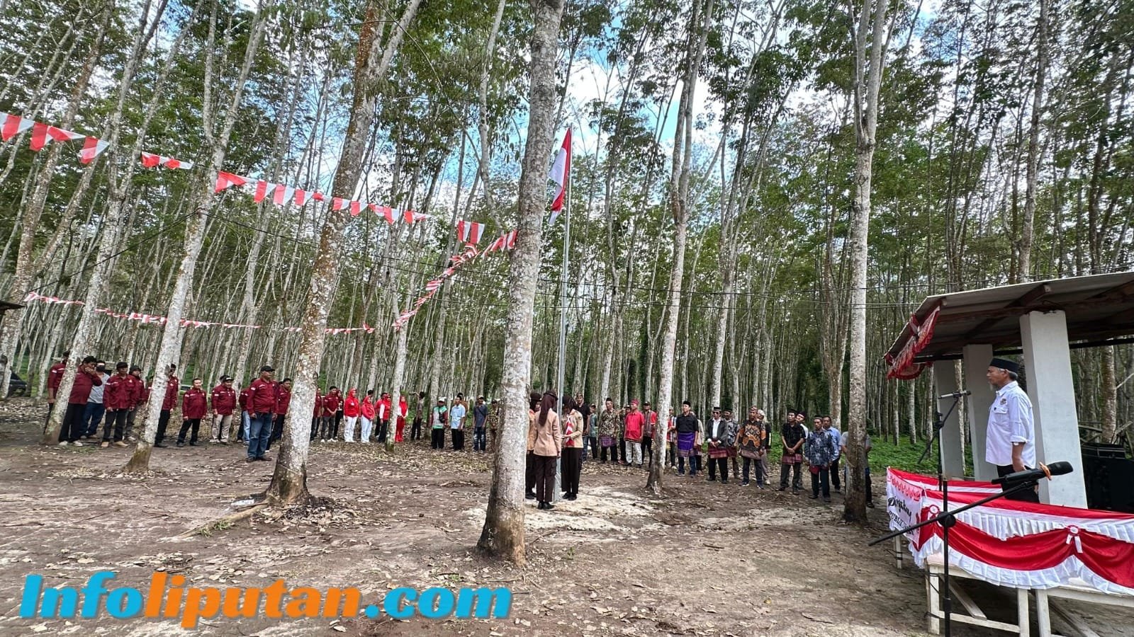 Infoliputan.com/Pesawaran-Masyarakat yang tergabung dalam perjuangan Tanah Tanjung Kemala melalui Aliansi Masyarakat Menggugat dan Paguyuban Tanjung Kemala menggelar Upacara Peringatan Detik-Detik Proklamasi di Kebun Tanjung Kemala, Desa Tamansari, Kabupaten Pesawaran, Minggu (17/8/25).